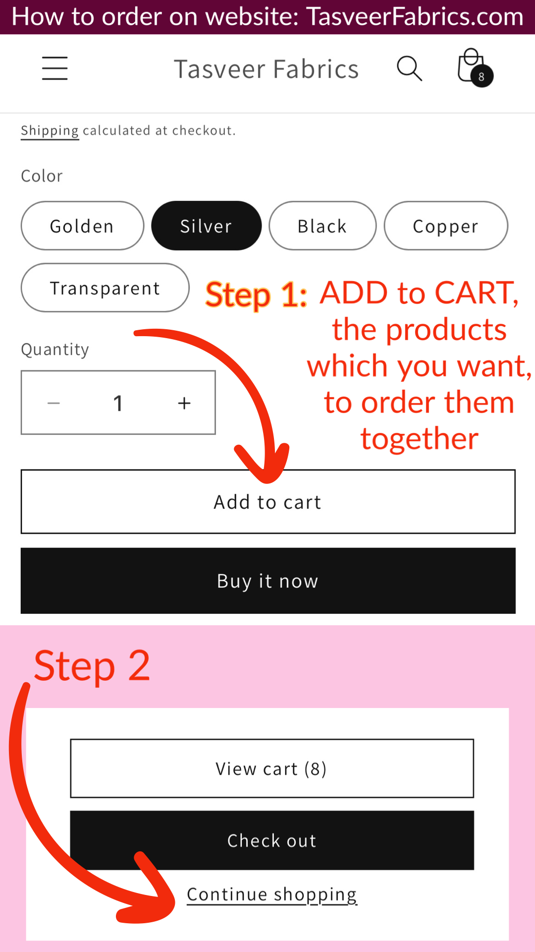 Use "Add to Cart" to order multiple products together.